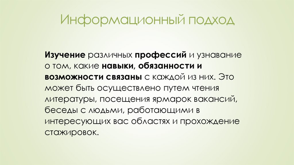 служат его интересы, способности, система ценностей и карьерные цели. Удачное
