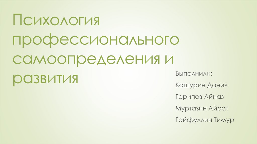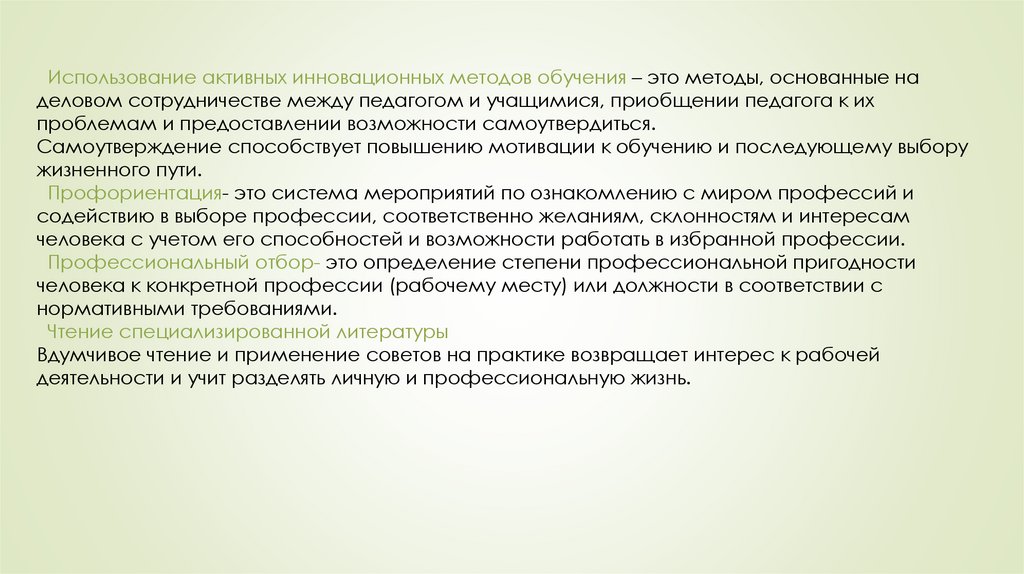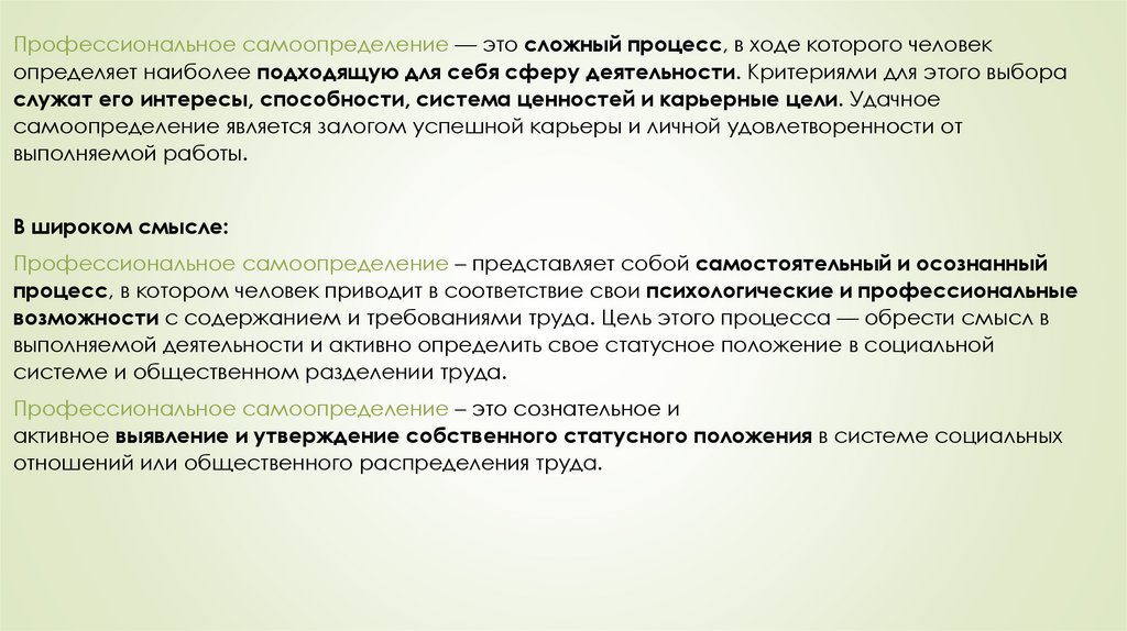 Профессиональное самоопределение – представляет собой самостоятельный и осознанный