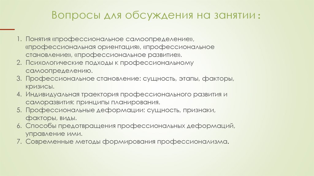 Вопросы для обсуждения на занятии:1. Понятия «профессиональное самоопределение»,