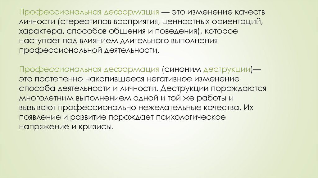 Профессиональные деформации личности невозможно предотвратить, но ими можно управлять, создавая