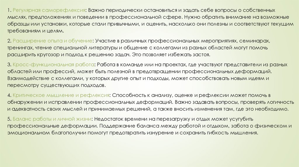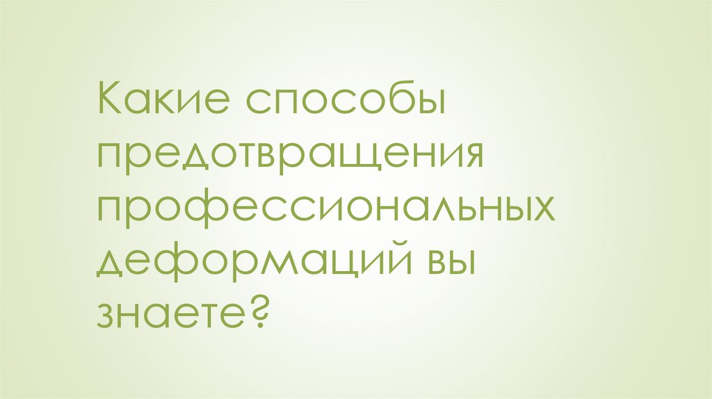 4) Какие меры профилактики и преодоления профессиональных деформаций своих сотрудников необходимо