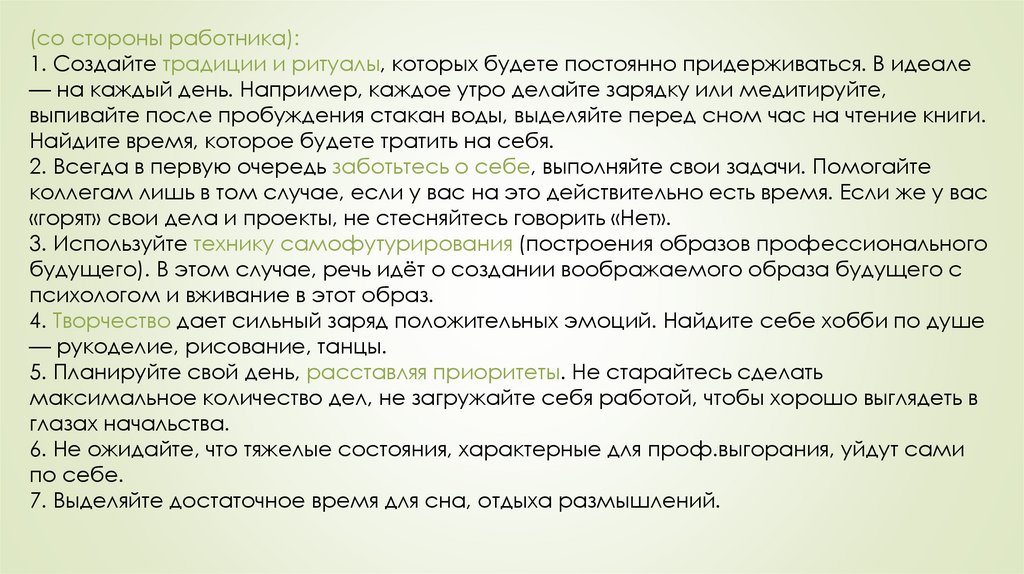 3) Охарактеризуйте меры, которые может предпринять сам сотрудник для профилактики и преодоления собственных