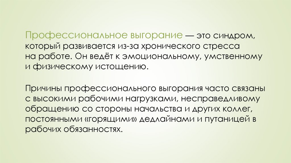 концу дня он чувствует вину за невыполненную задачу и выгорает.