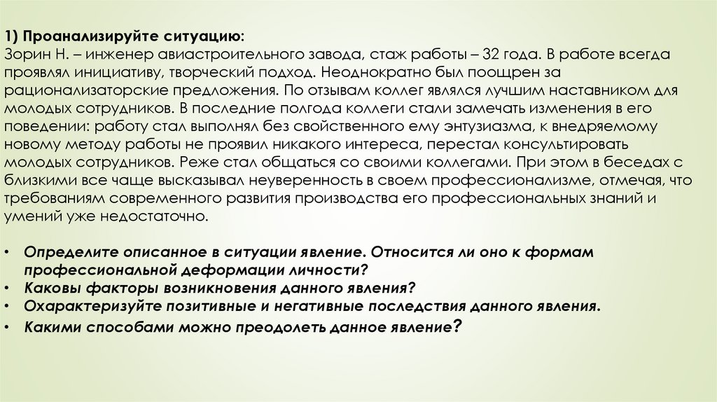1. Какое явление описано в ситуации и к каким формам профессиональной деформации