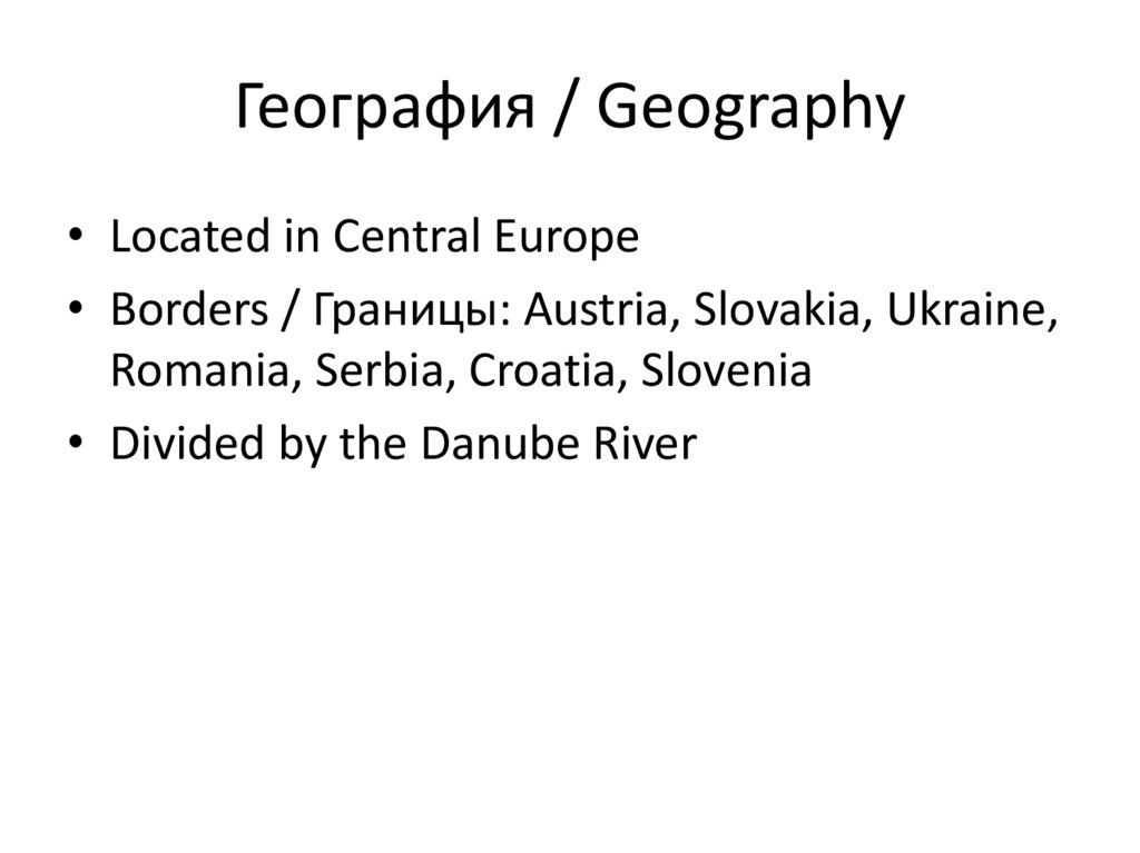 • Borders / Границы: Austria, Slovakia, Ukraine,