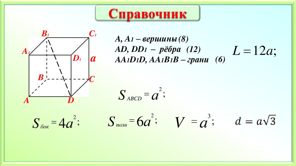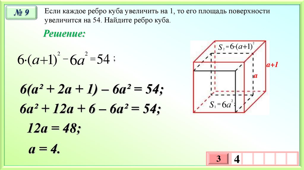 №9Если каждое ребро куба увеличить на 1, то его площадь поверхности