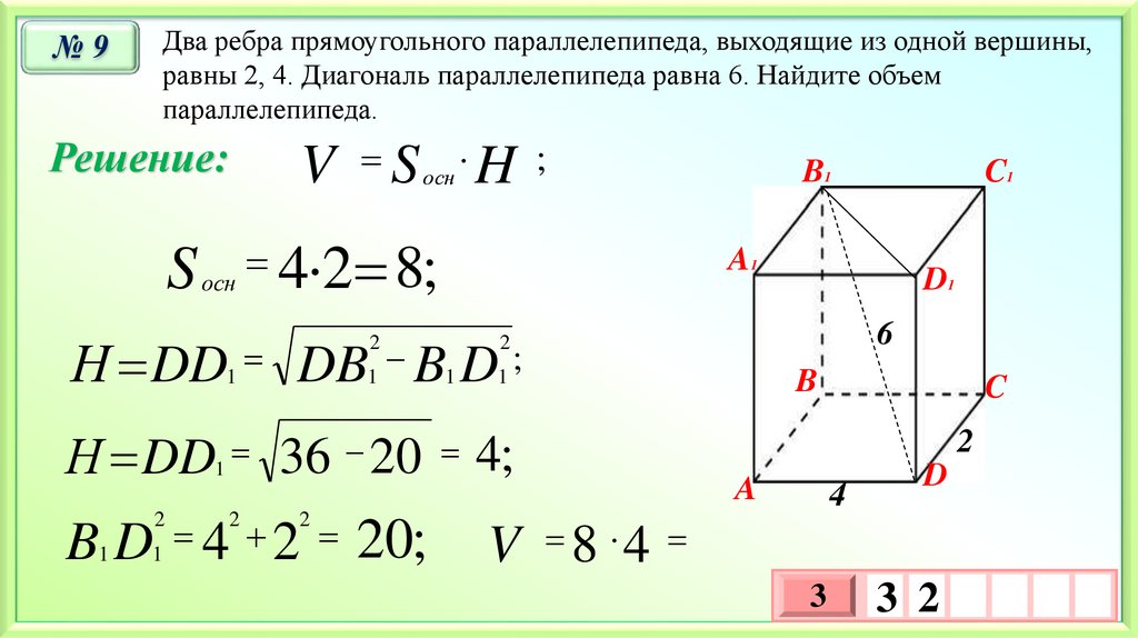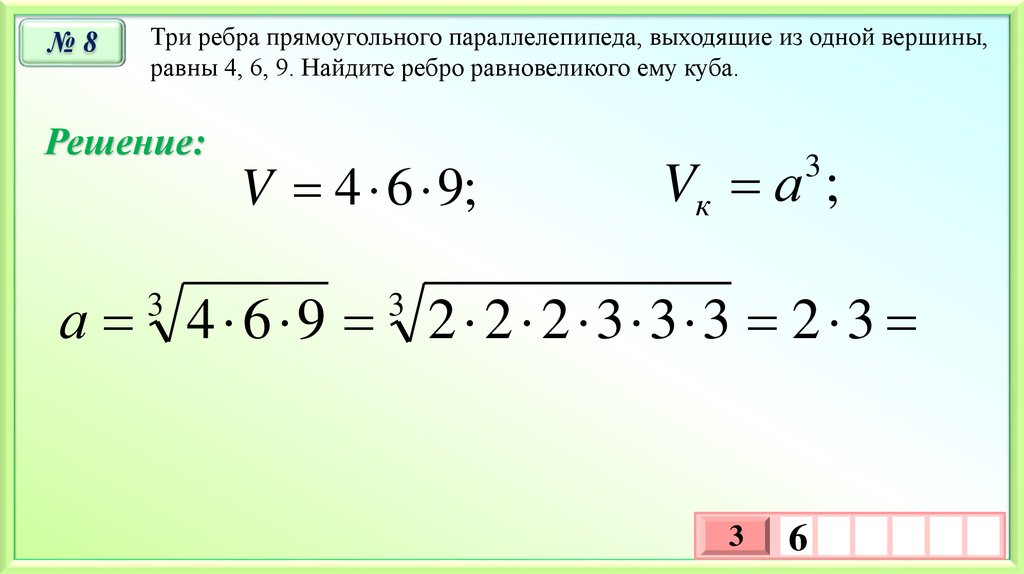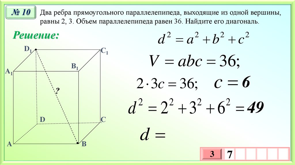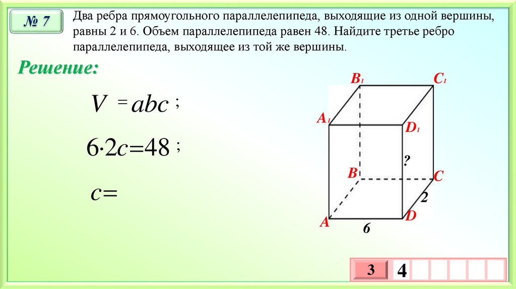 №7Два ребра прямоугольного параллелепипеда, выходящие из одной вершины,