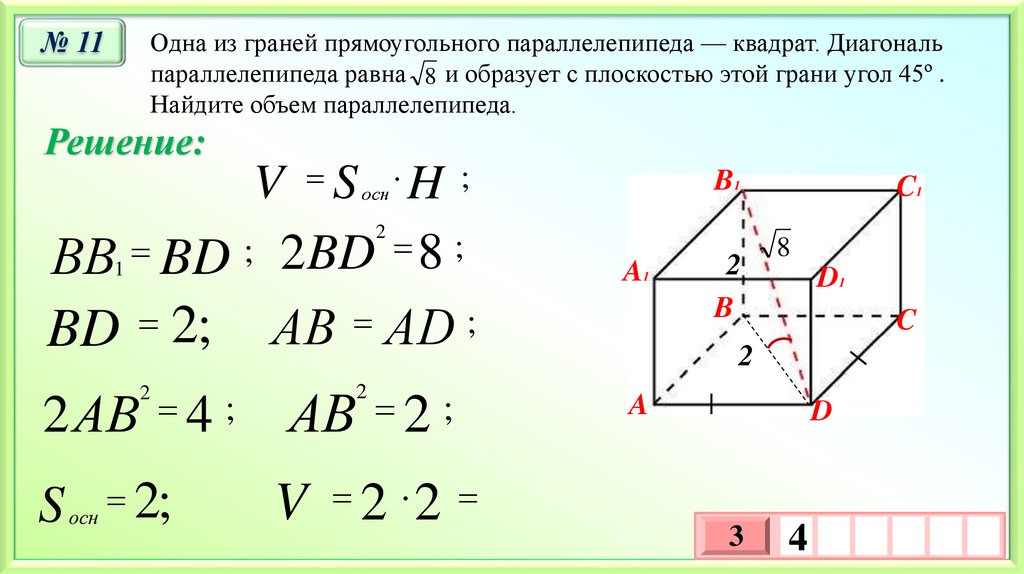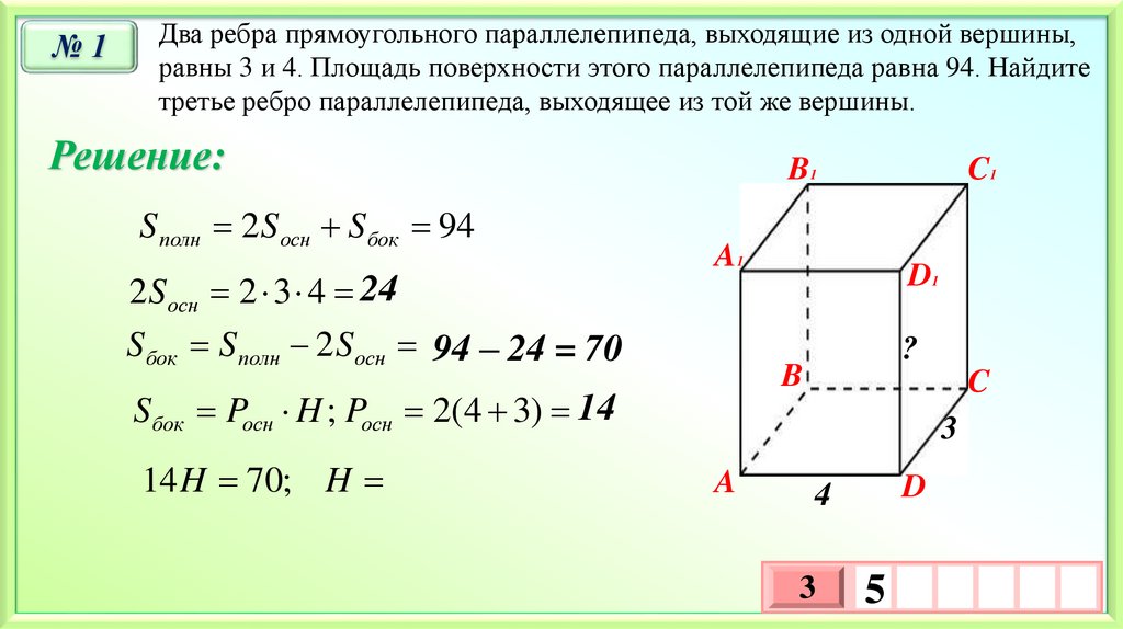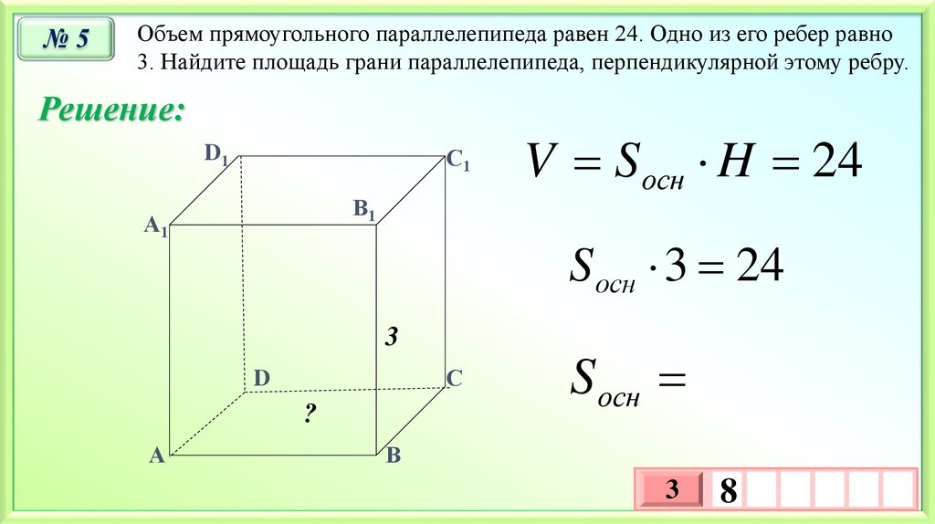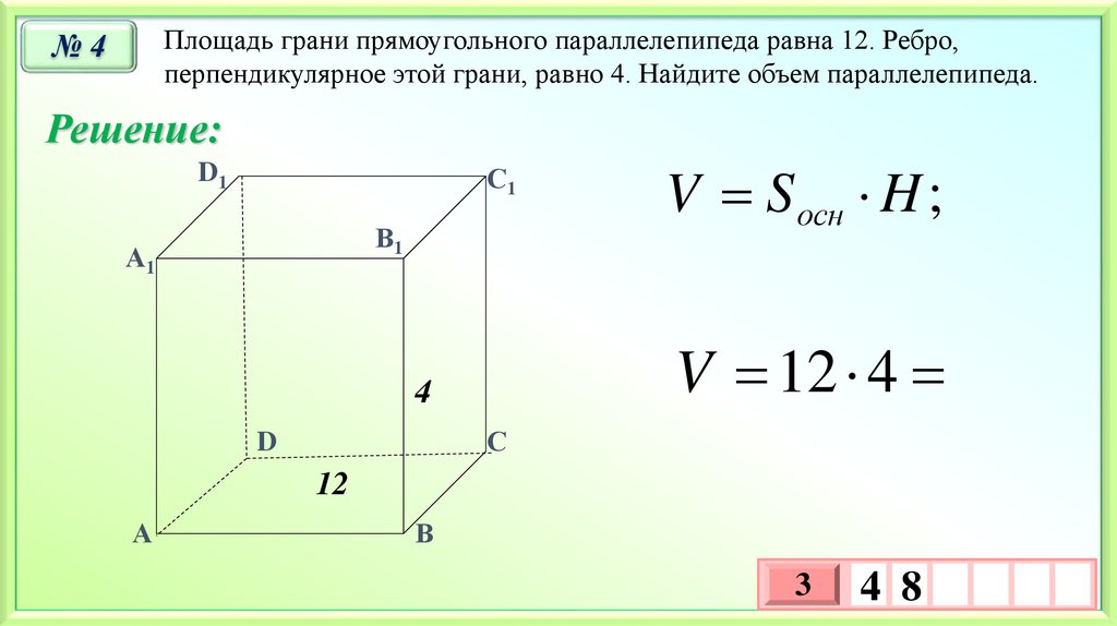 3. Найдите площадь грани параллелепипеда, перпендикулярной этому ребру.