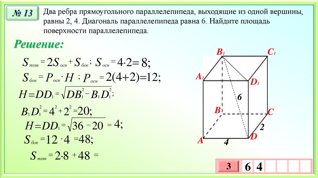 №1Два ребра прямоугольного параллелепипеда, выходящие из одной вершины,