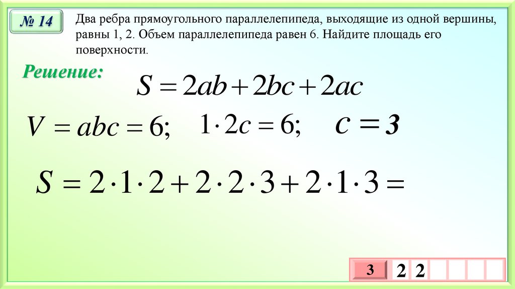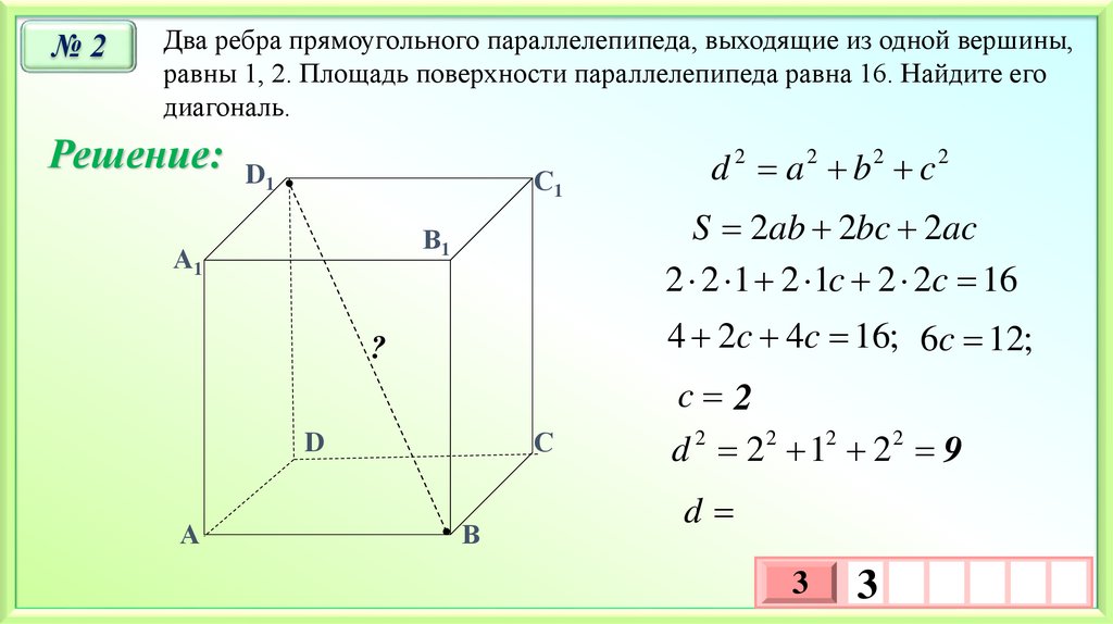 №2Два ребра прямоугольного параллелепипеда, выходящие из одной вершины,