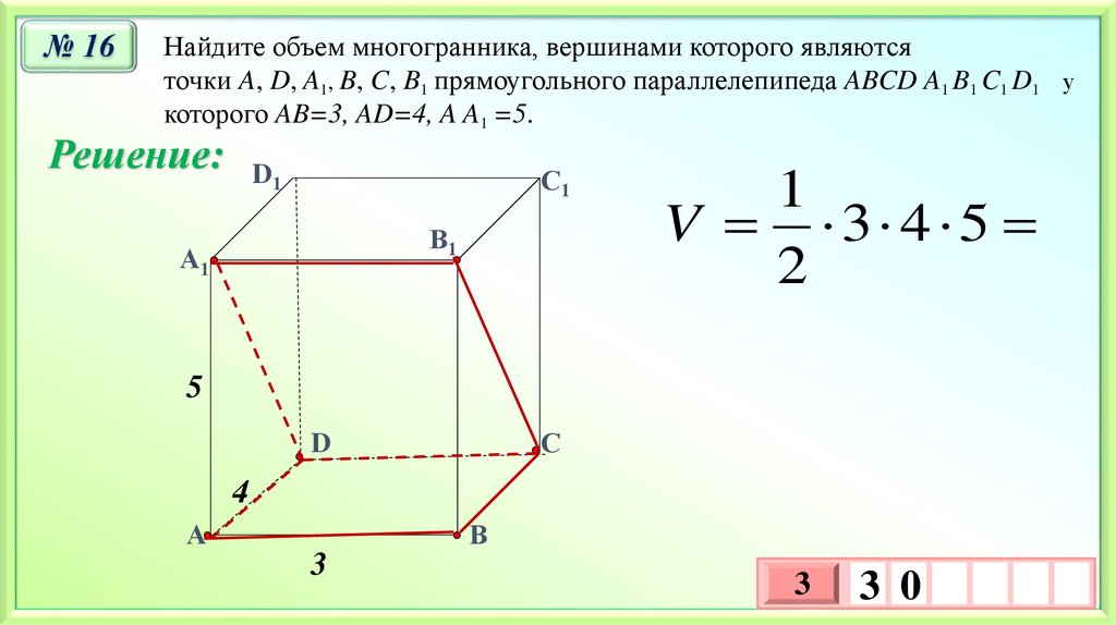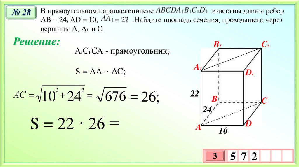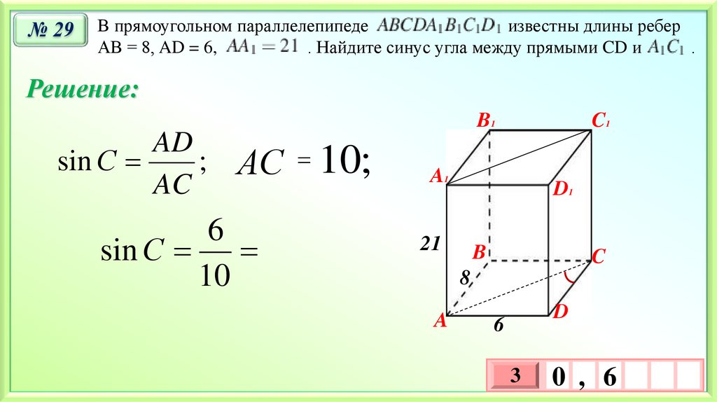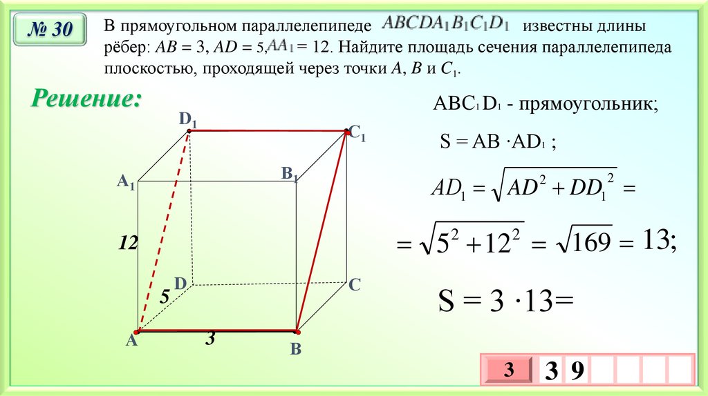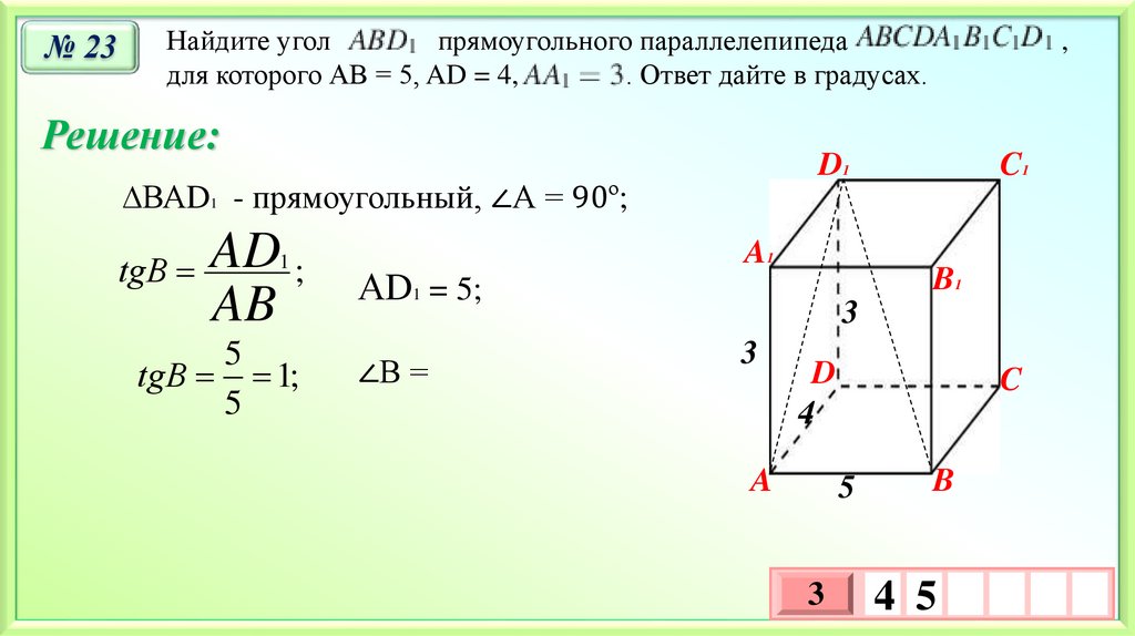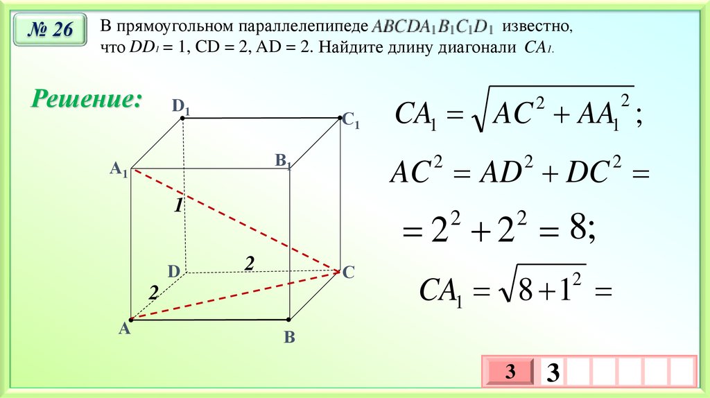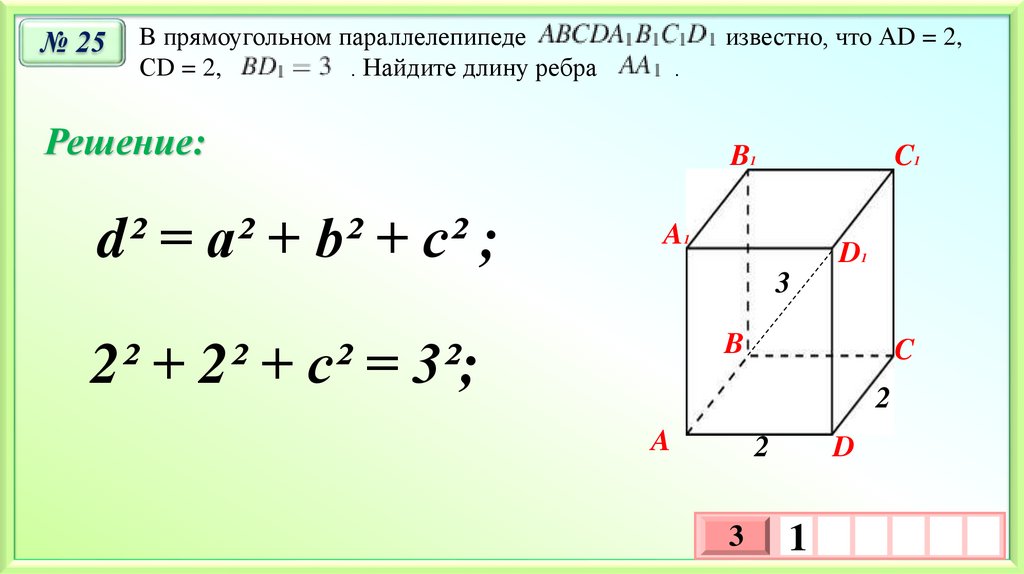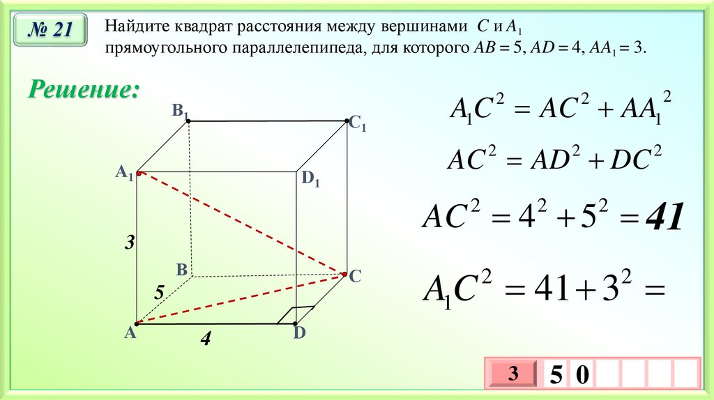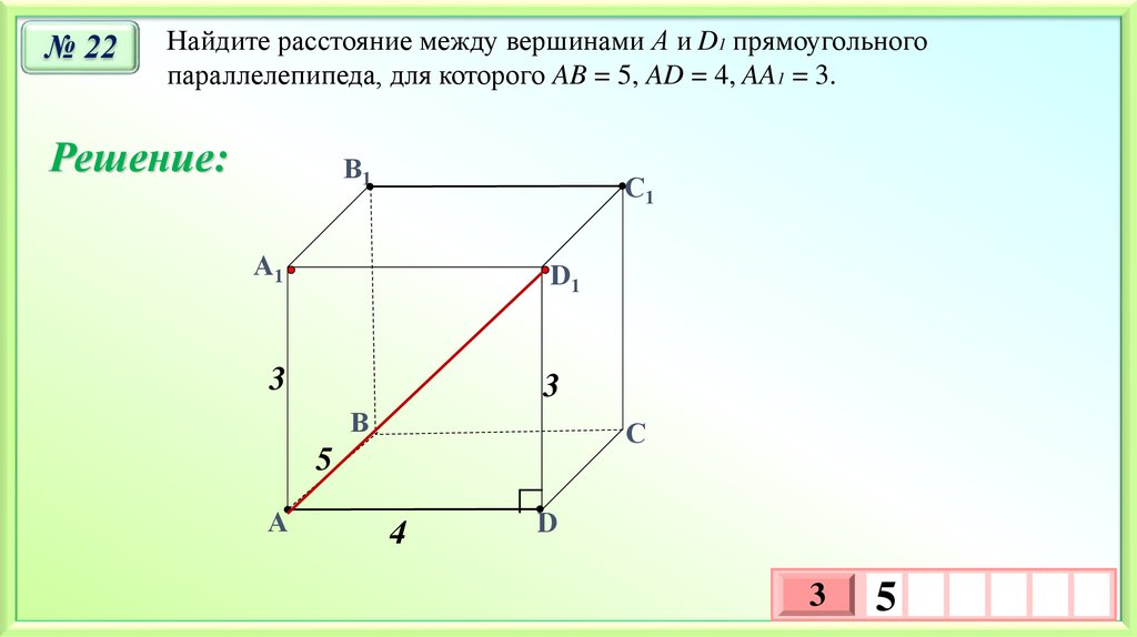 № 22Найдите расстояние между вершинами А и D1 прямоугольного