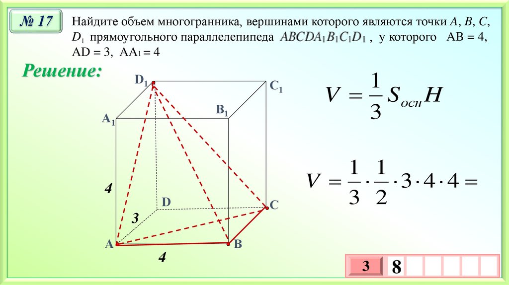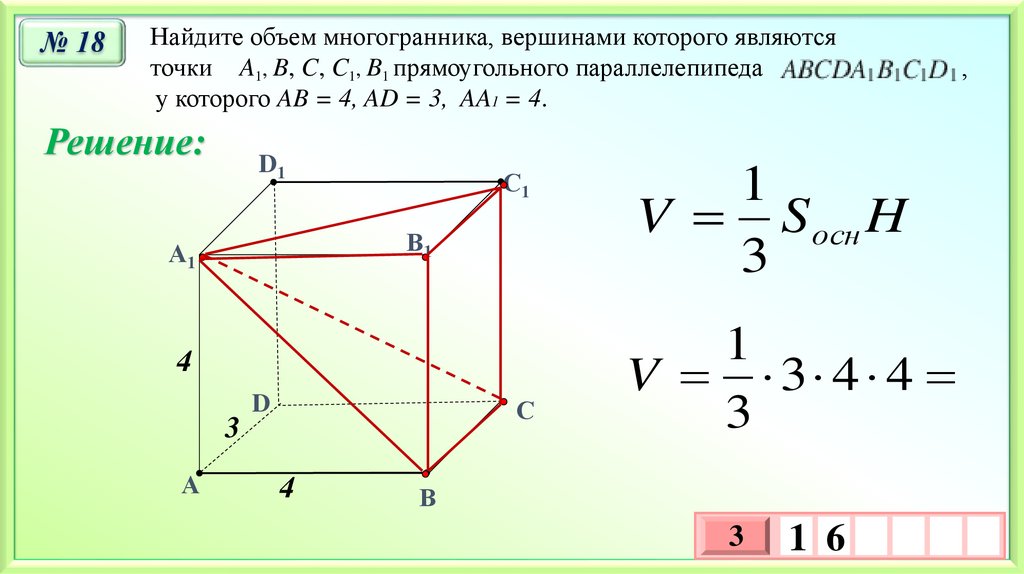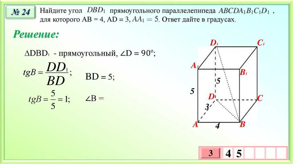параллелепипеда, для которого AB = 5, AD = 4, AA1 = 3.