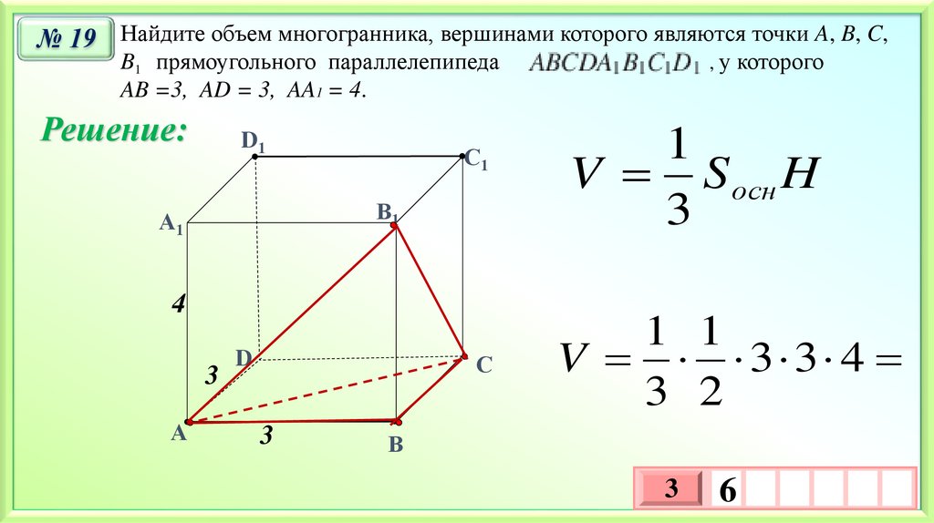 №5Объем прямоугольного параллелепипеда равен 24. Одно из его ребер равно