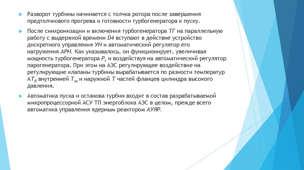 9. Автоматическое управление пуском турбогенераторов атомных электростанций