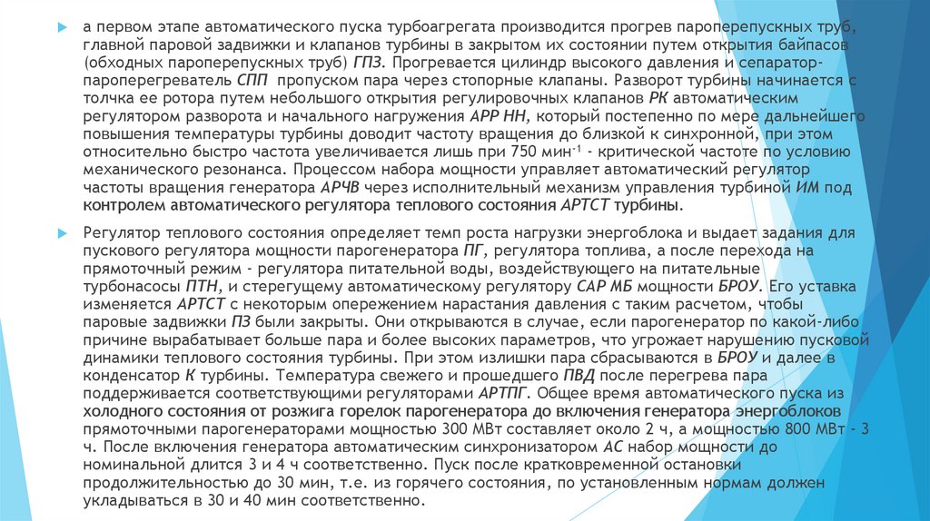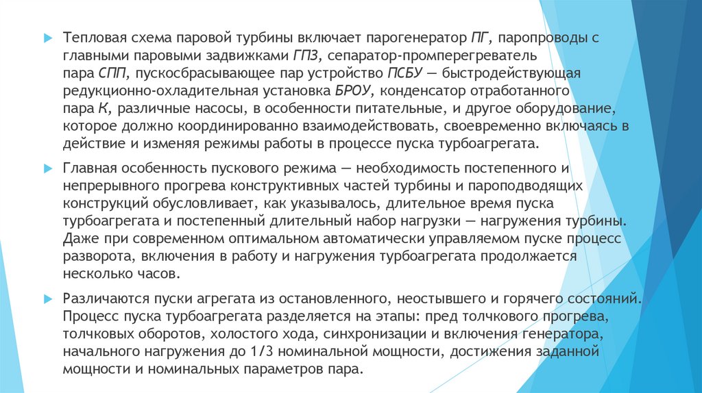 турбоагрегата и постепенный длительный набор нагрузки — нагружения турбины.