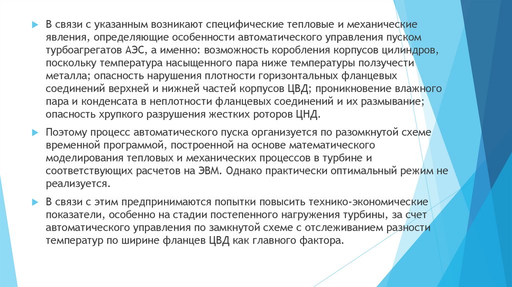 В связи с указанным возникают специфические тепловые и механическиеявления, определяющие особенности автоматического управления пуском