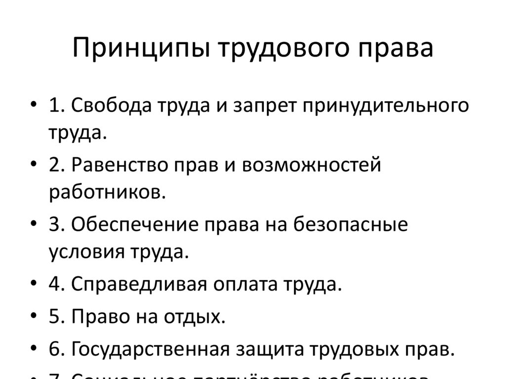 Принципы трудового права• 1. Свобода труда и запрет принудительного