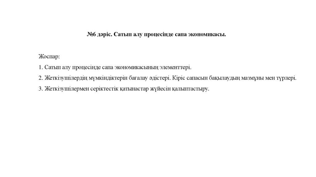№6 дәріс. Сатып алу процесінде сапа экономикасы.Жоспар: