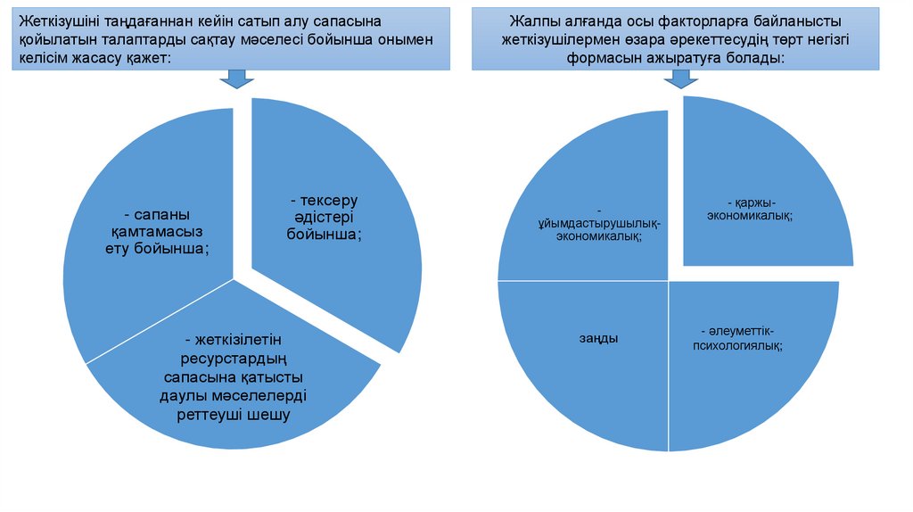 Жеткізушіні таңдағаннан кейін сатып алу сапасынақойылатын талаптарды сақтау мәселесі бойынша онымен