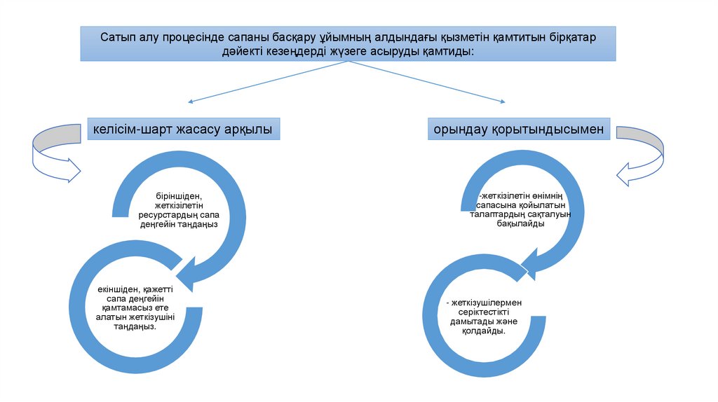 Сатып алу процесінде сапаны басқару ұйымның алдындағы қызметін қамтитын бірқатардәйекті кезеңдерді жүзеге асыруды қамтиды: