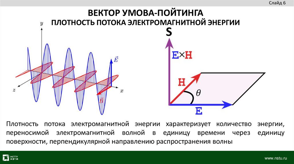 Плотность потока электромагнитной энергии характеризует количество энергии,