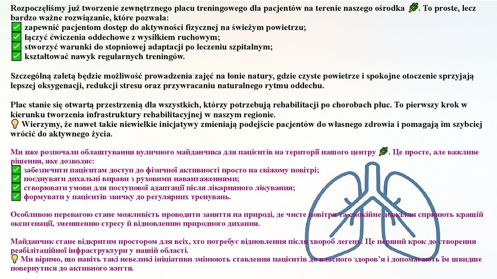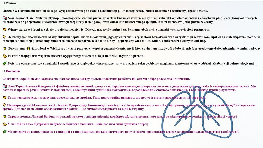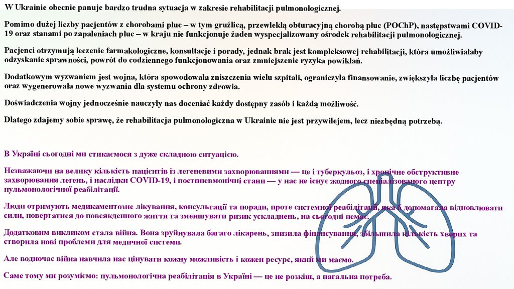 Розвиток пульмонологічної реабілітації в Україні та роль і підтримка Малопольської лікарні