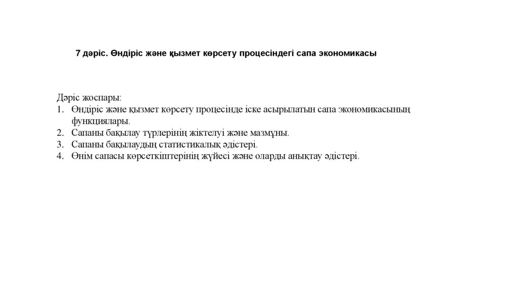 7 дәріс. Өндіріс және қызмет көрсету процесіндегі сапа экономикасыДәріс жоспары: