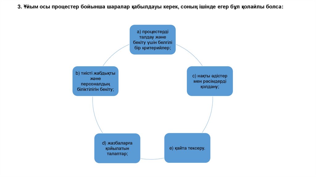 3. Ұйым осы процестер бойынша шаралар қабылдауы керек, соның ішінде егер бұл қолайлы болса:a) процестерді