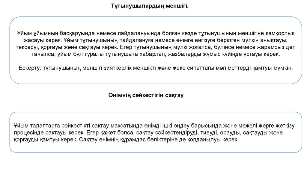 жасауы керек. Ұйым тұтынушының пайдалануға немесе өнімге енгізуге берілген мүлкін анықтауы,