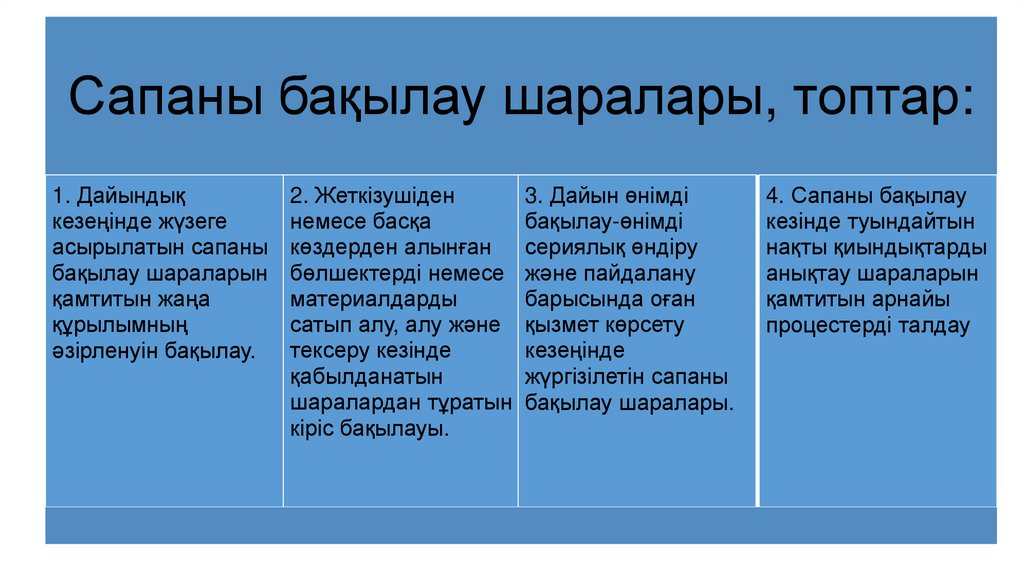 2. Сапаны бақылау түрлерінің жіктелуі және мазмұны.