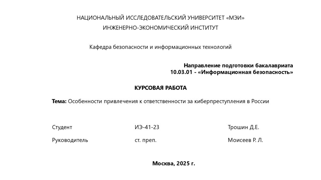 Тема: Особенности привлечения к ответственности за киберпреступления в России