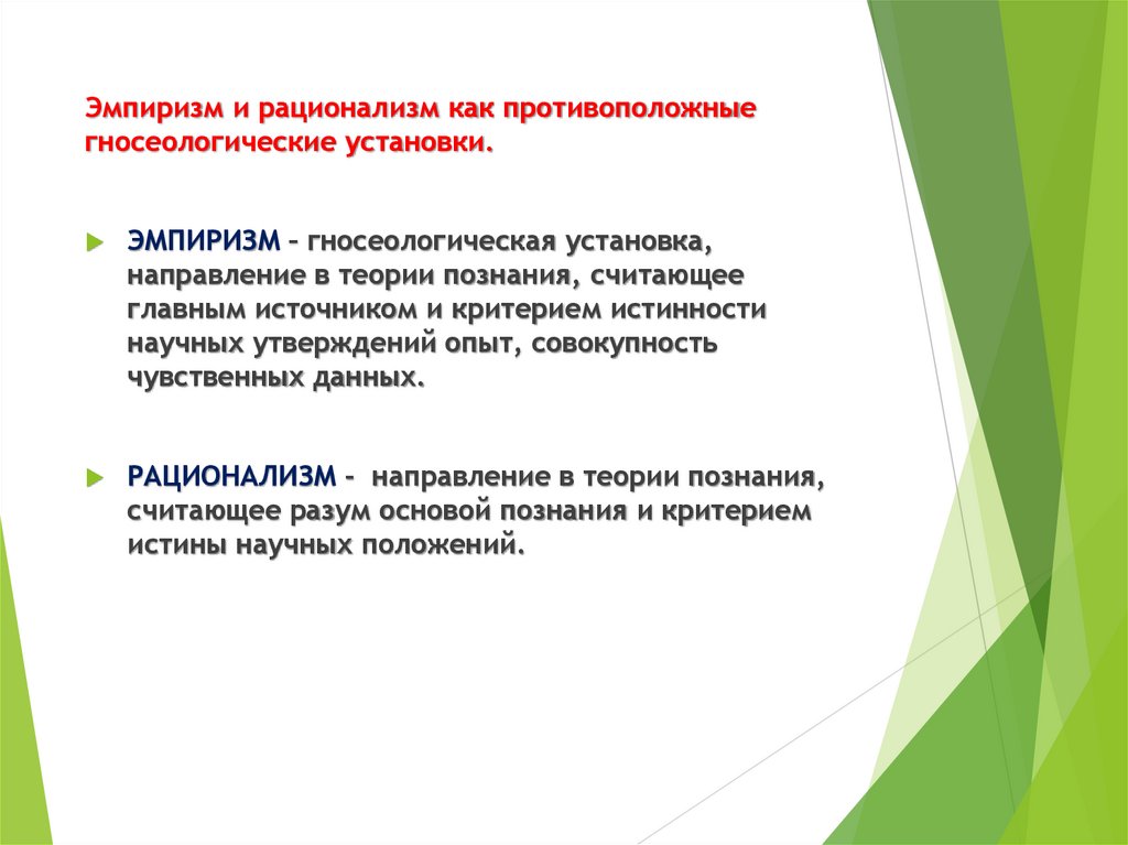 Эмпиризм и рационализм как противоположныегносеологические установки.