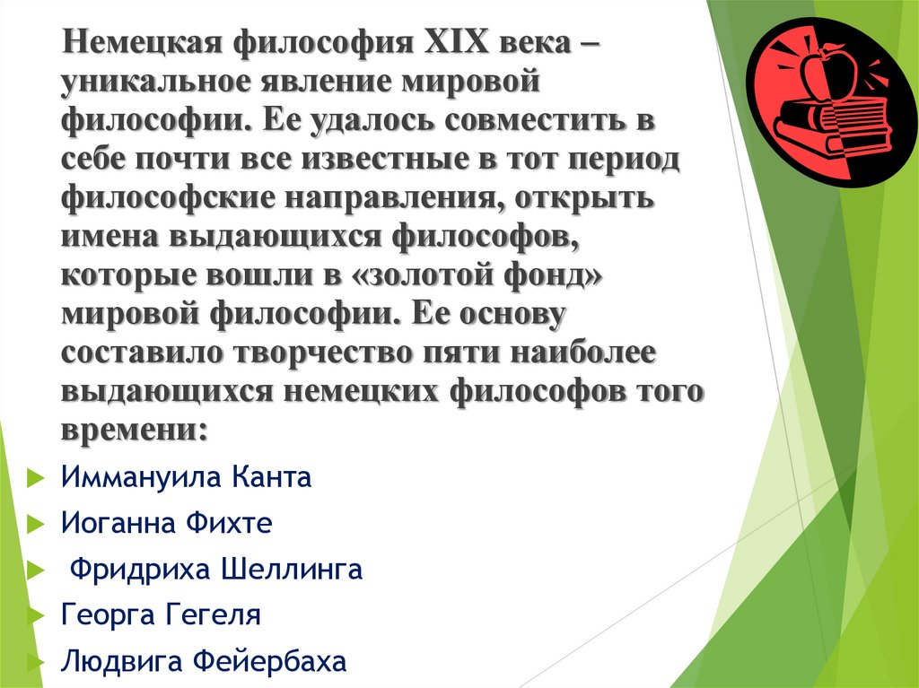 5. В немецкой классической философии были представлены три ведущих философских направления: