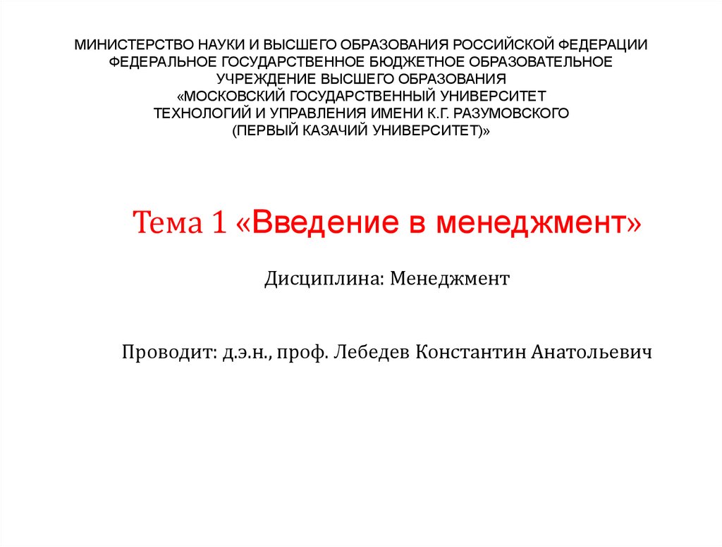 Дисциплина «Менеджмент» является одной из базовых в структуре