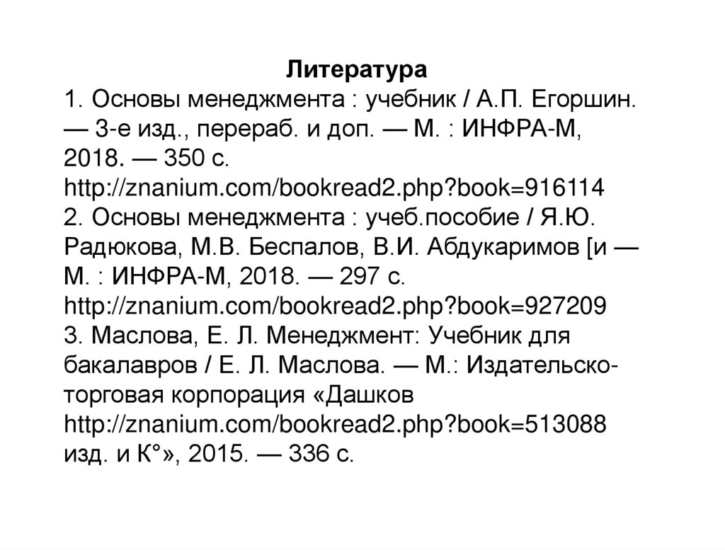 Литература1. Основы менеджмента : учебник / А.П. Егоршин.