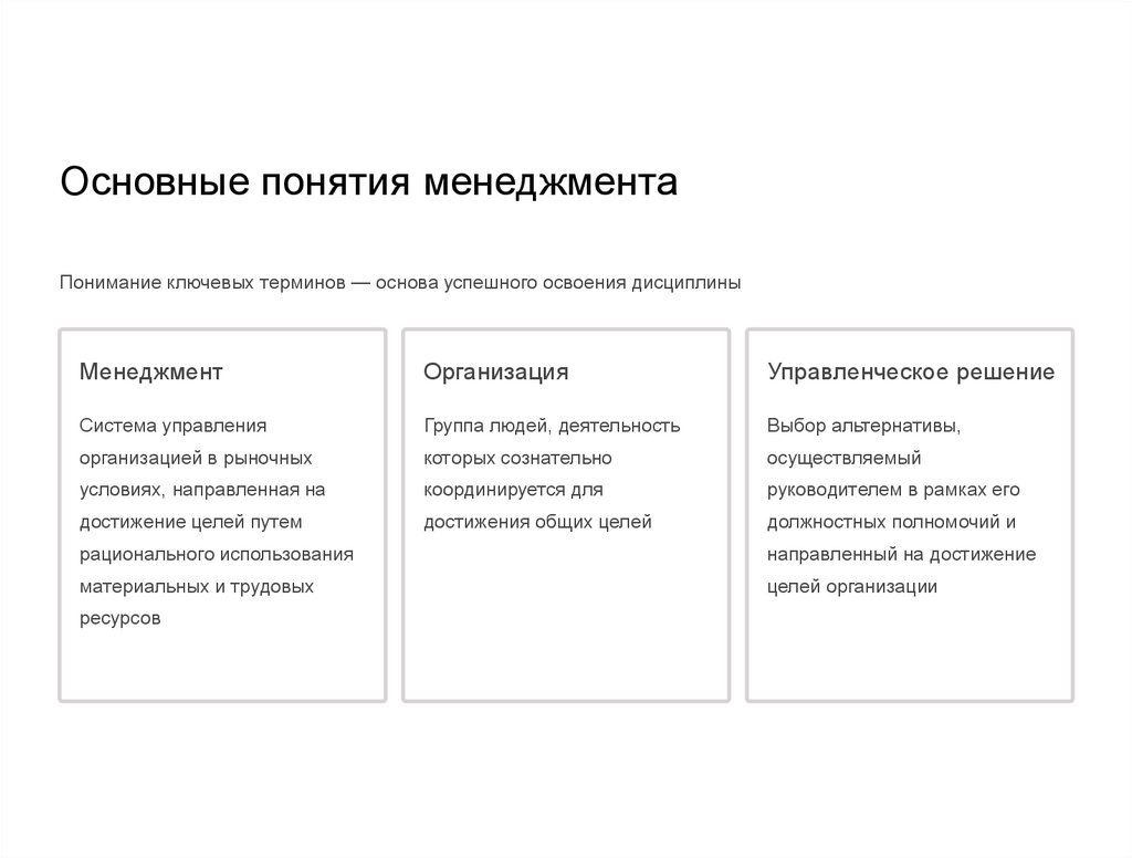 Основные понятия менеджментаПонимание ключевых терминов — основа успешного освоения дисциплины
