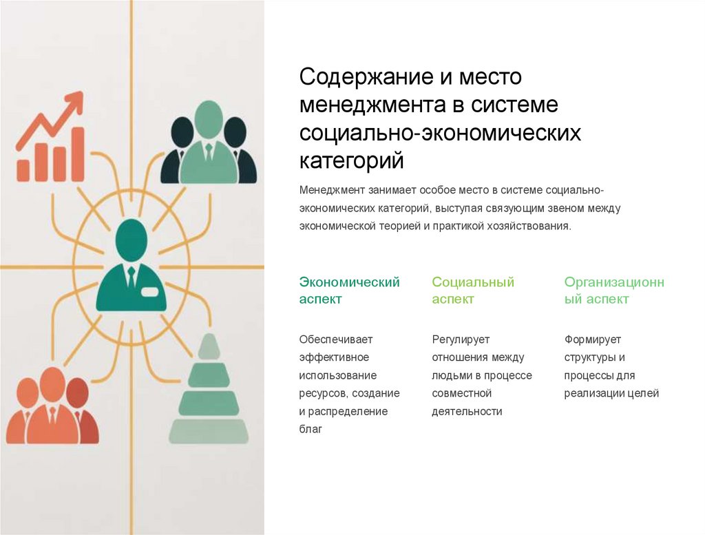 Менеджмент занимает особое место в системе социальноэкономических категорий, выступая связующим звеном между