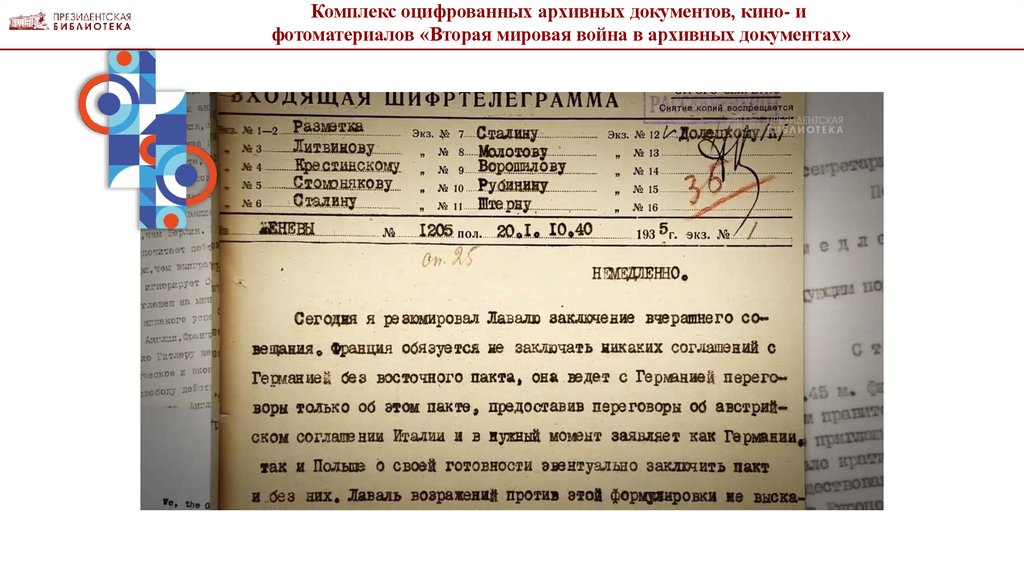 Совместный Проект МГИМО и Президентской библиотеки«Вторая мировая война в архивных документах»