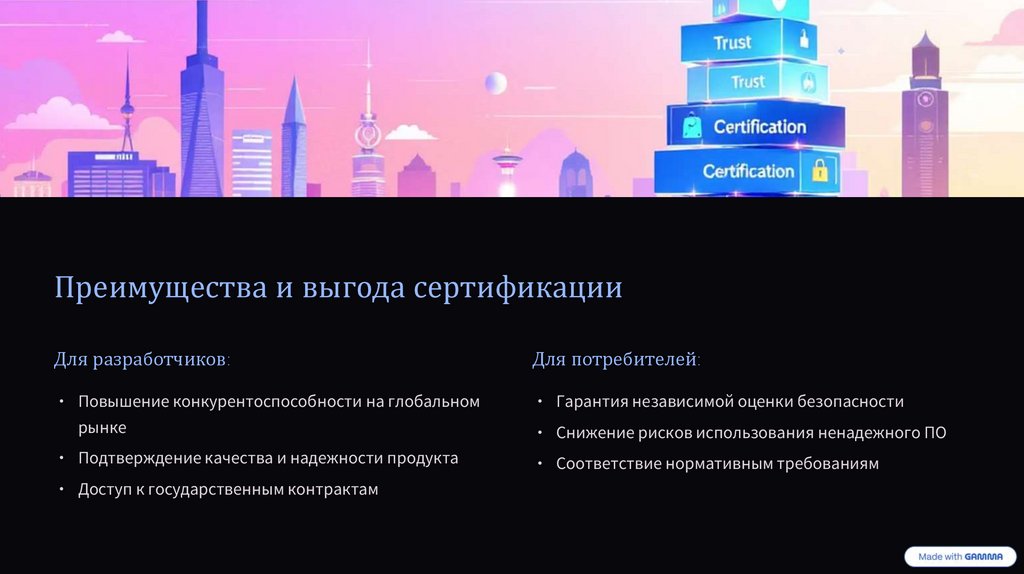 Преимущества и выгода сертификацииДля разработчиков: