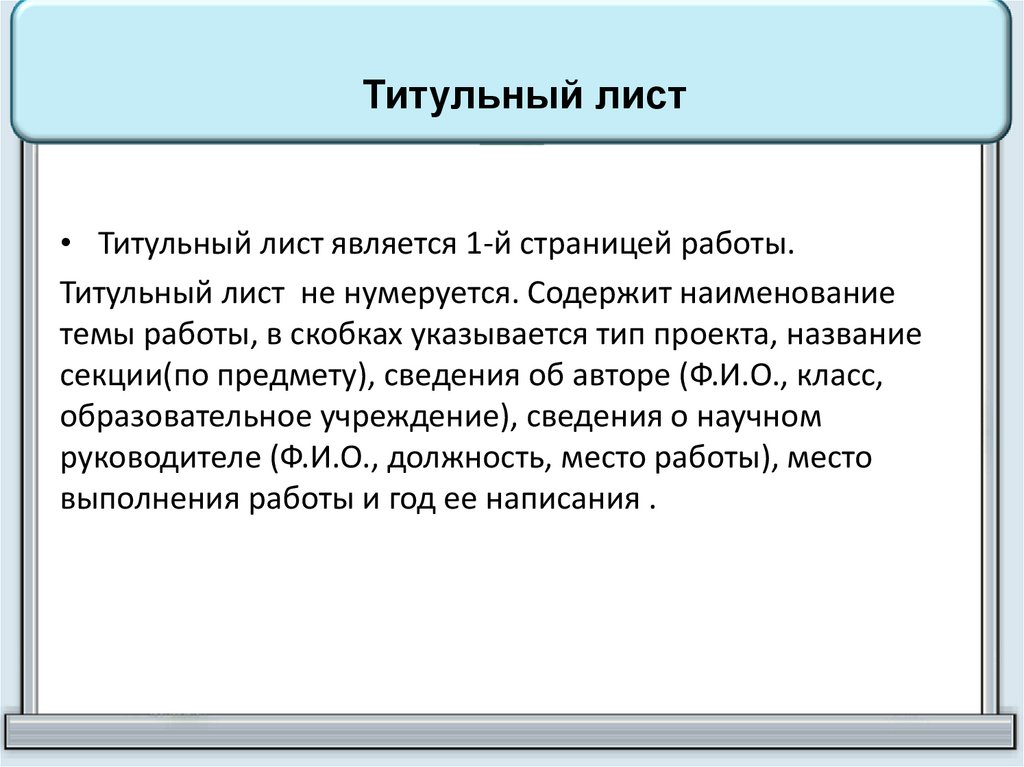 Титульный лист• Титульный лист является 1-й страницей работы.
