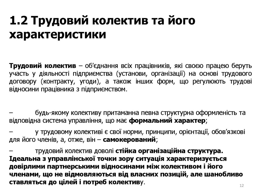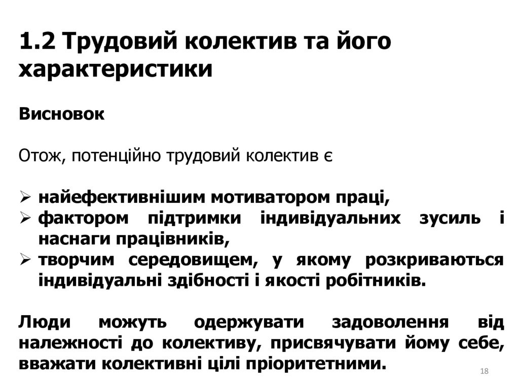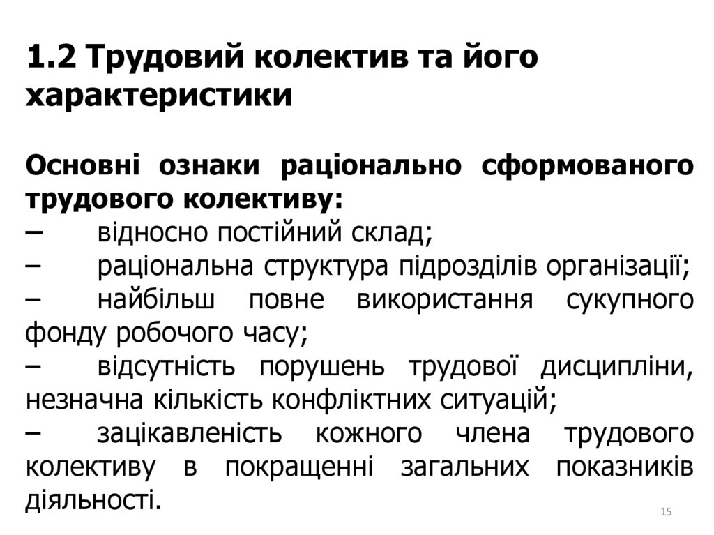 Трудовий колектив та його характеристики.