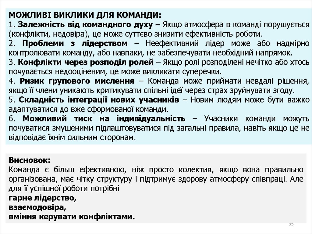 що довели свою корисність та ефективність в умовах командної діяльності.