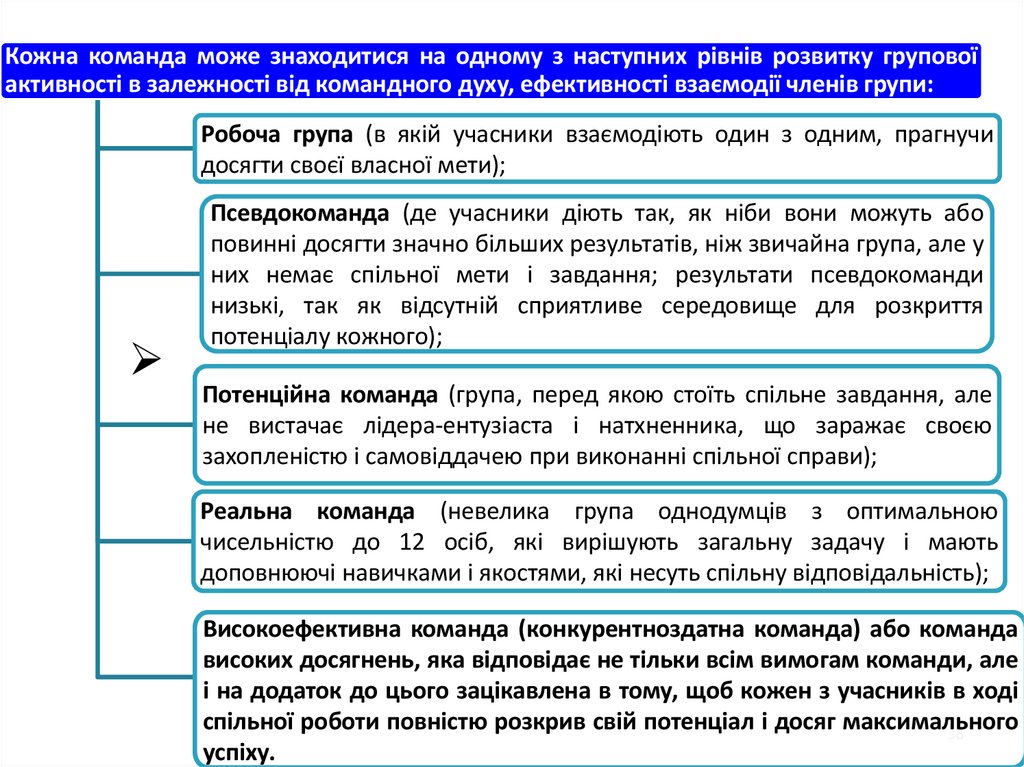 Тож, команда є згуртованою спільнотою,особливою групою осіб, відданою певним