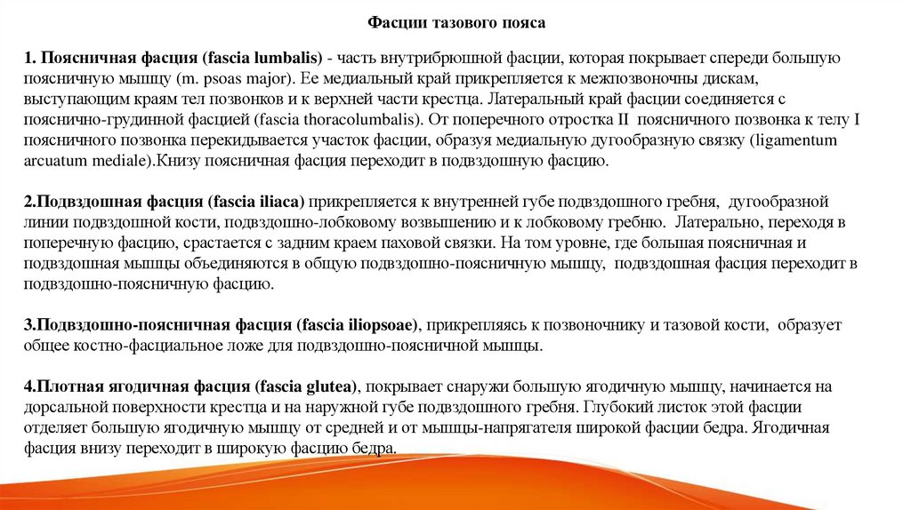 мышцы переходит в подвздошную фасцию и в подвздошногребенчатую дугу.