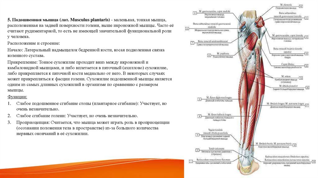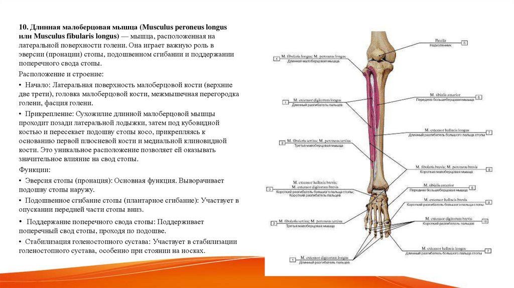 Тонкое брюшко этой мышцы переходит в длинное сухожилие,
