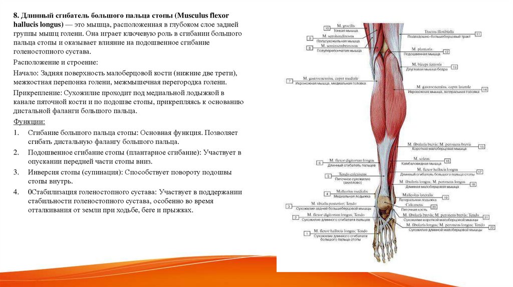 сухожилий длинного сги-бателя пальцев, медиально расположенная мышца берет начало на ме-диальной стороне прилежащего