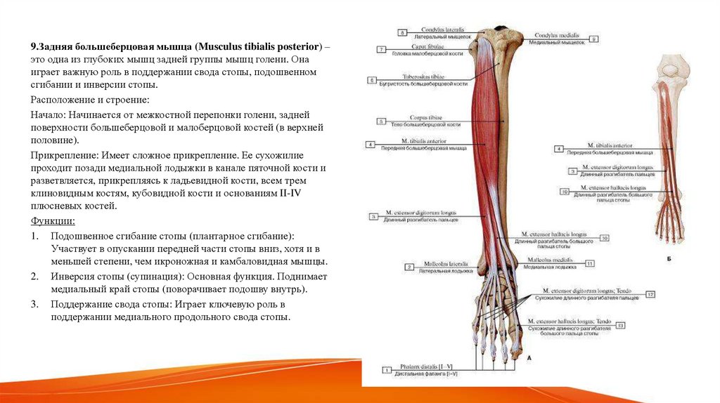 Функция: сгибает II-V пальцы; участвует в укреплении продольного свода