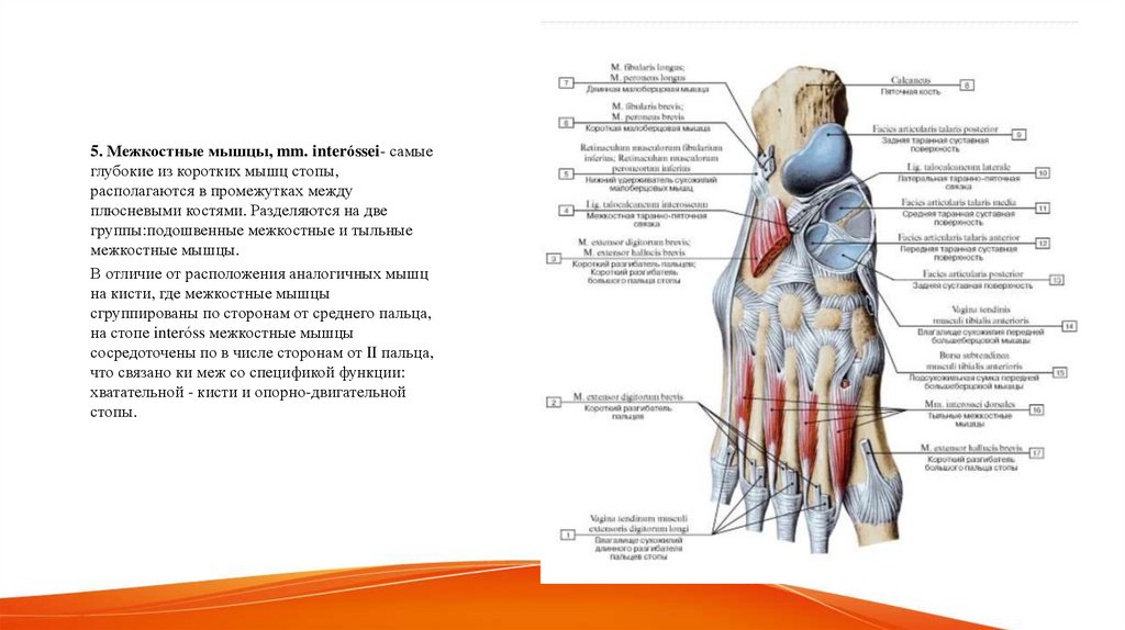 5. Межкостные мышцы, mm. interóssei- самыеглубокие из коротких мышц стопы,