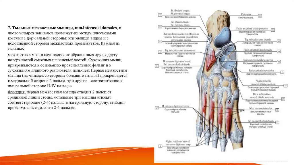 поверхностей смежных плюсневых костей. Сухожилия мышц