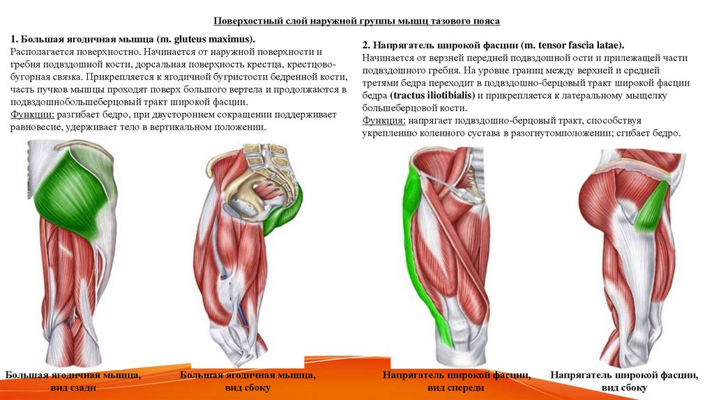 Функция: натягивает подвздошную фасцию, увеличивая опору для
